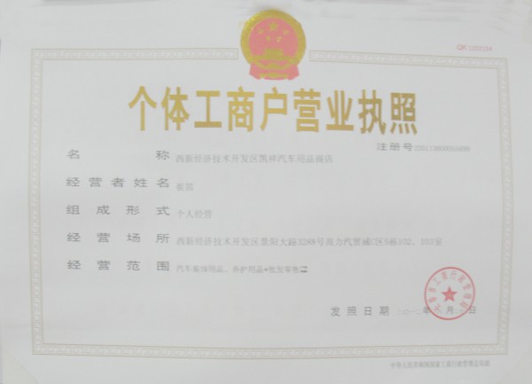 证书编号: 00001 证书名称: 个体工商户营业执照 发证机构: 长春市工商行政管理局 生效日期: 2012年09月05日 截止日期: 2013年09月05日 认证简介: